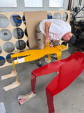 The Human Table collection is still unfolding, but currently boasts two brightly painted human-sized tables. The first human table came from a much smaller prototype designed in early 2025.