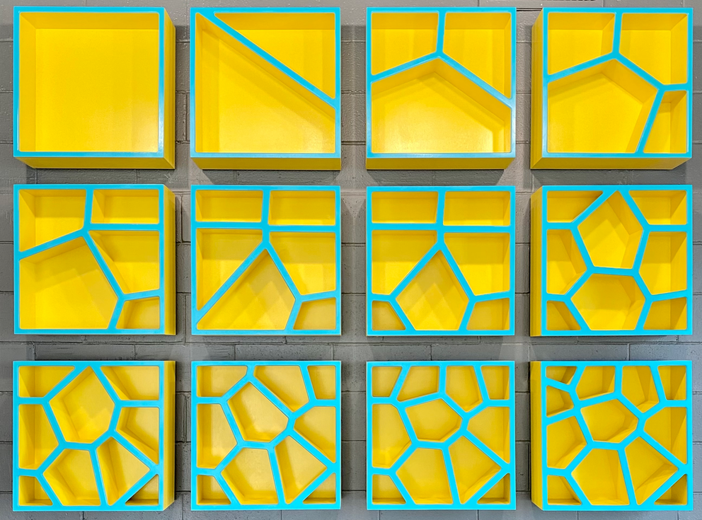 Voronoi is a mathematical pattern that determines how physical space is divided. It can be found in the spots of a giraffe or the wings of a dragonfly. The Voronoi Evolution art piece is a representation of that mathematical pattern as it unfolds.